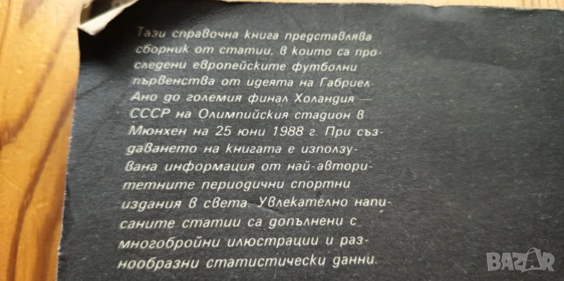 Това е справочна книга, сборник от статии, в които са проследени европейските футболни първенства от идеята на Габриел Ано до големия финал Холандия-СССР на Олимпийския стадион в Мюнхен на 25 юни 1988 г.