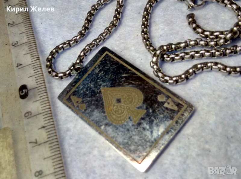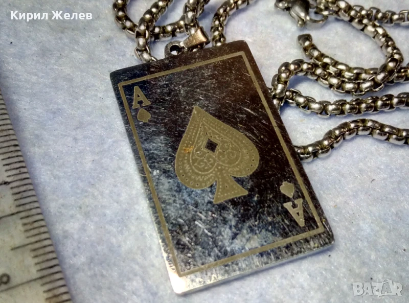 СТИЛЕН ПОКЕРДЖИЙСКИ АРТ МЕДАЛЬОН АСО ПИКА от ЛЕГИРАНА БЛАГОРОДНА СТОМАНА със СТОМАНЕНА ВЕРИЖКА 38440