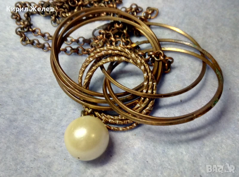СТИЛНА БРОНЗИРАНА ПЕРЛЕН ТИП ВИНТИДЖ АРТ ОГЪРЛИЦА КОЛИЕ 49818