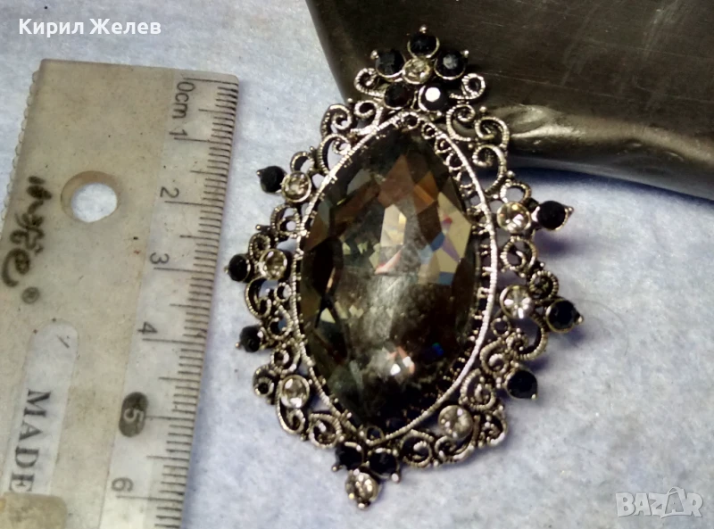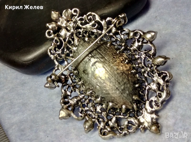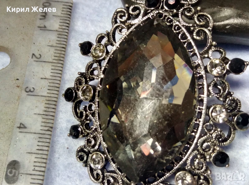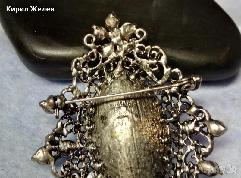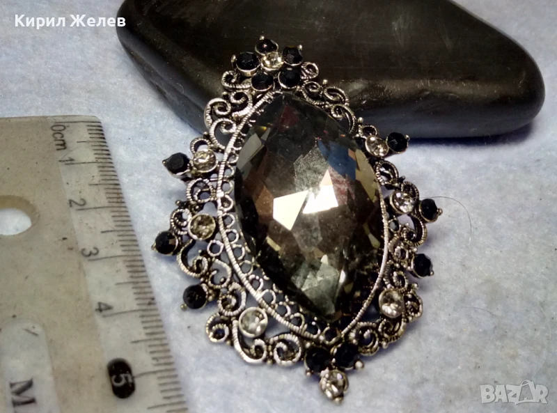 ЕФЕКТНА КРИСТАЛНА ФИЛИГРАНЕН СТИЛ СРЕБРИСТА РЕТРО АРТ БРОШКА 41602