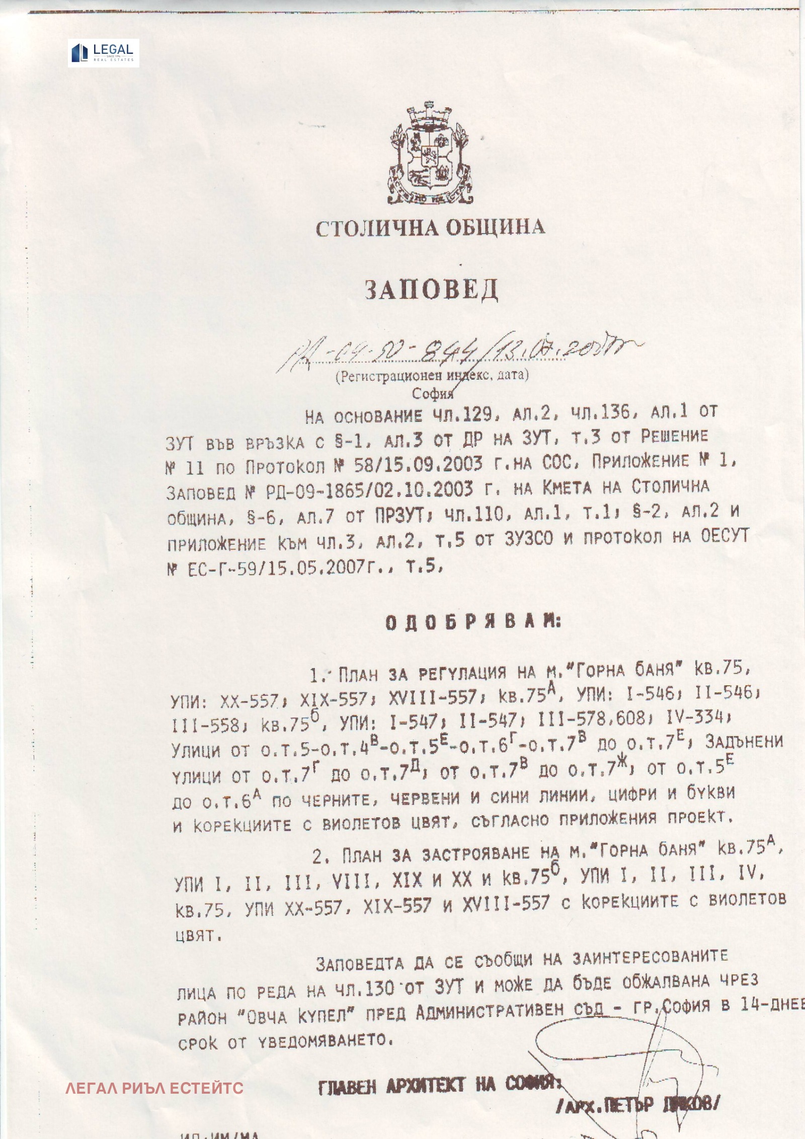 'LEGAL REAL ESTATES' предлага три съседни парцела - УПИ IV 334 и УПИ III 578, 608, квартал 75Б , в.з. Горна баня с обща с площ от 8 721кв.м. УПИ III 578, 608 има издадена Виза за проучване и проектиране. Парцелите се намират във високата част на кв. Горна Баня, местност 'РУСОЛЕТЕ', вляво от адвокатските къщи , с панорама към София и планината. Целогодишен достъп, ток и вода в съседство. Застроени нови престижни имоти в близост. До зелена и чиста зона. Имотите са подходящи за построяване на къщи или малки жилищни сгради тип 'затворен комплекс'.