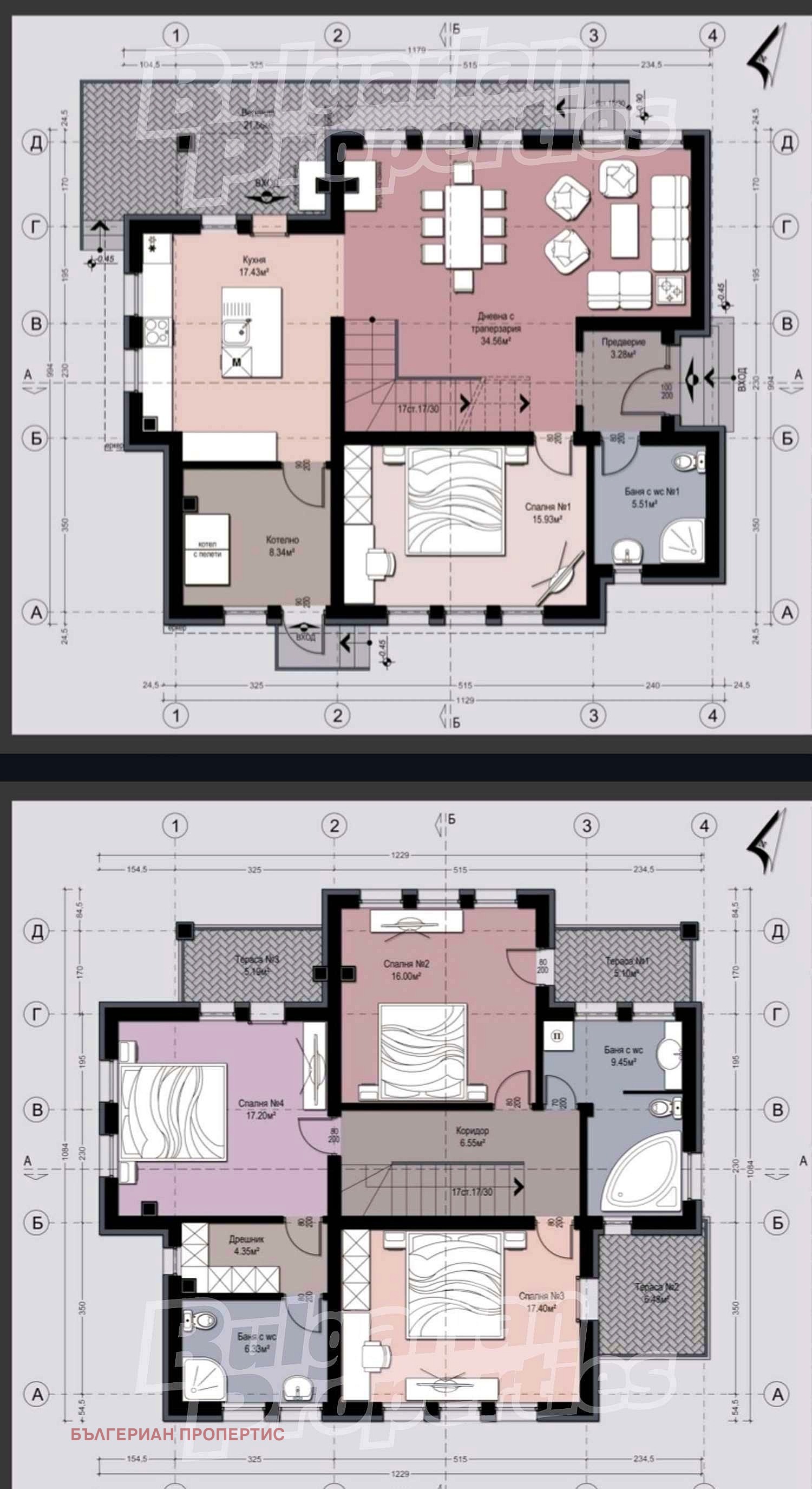 Втори етаж (114.21 кв. м.) - три спални, две бани, три тераси. Основната спалня разполага със собствена баня и съблекалня