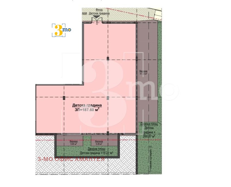 3mo Амалтея представя търговски обект пред акт 14, разположен в затворен жилищен комплекс. Намира се на метри от входа на метростанция Обеля в столицата.