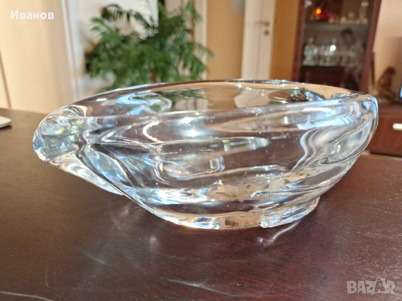 Красива кристална купа за плодове, бонбони и захарни изделия. Гладка, прозрачна, масивна и елегантна.