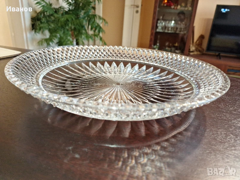Кристална чиния, купа плато поднос за ордьоври, плодове и други подобни. Кристално стъкло ретро арт декор винтидж колекция стари антикварни предмети обзавеждане за дома и семейството подходящи за подарък за ценители и колекционери
