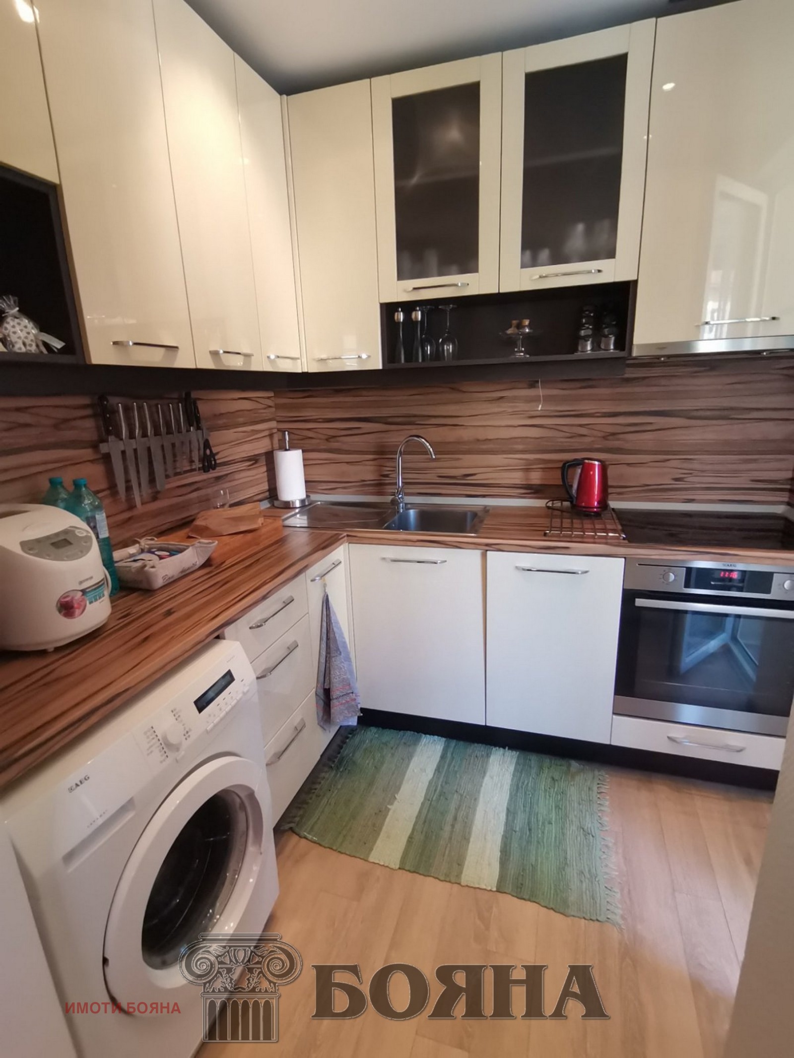 Имоти 'Бояна' предлага за продажба отлично поддържан етаж от къща в тих и спокоен район в близост до ДГ' Пинокио'. Жилището е на 2ри етаж от монолитна двуетажна къща и се състои от просторна дневна с напълно оборудвана кухня, обособени като голямо отворено пространство, две отделни спални, като от едната има излаз на тераса, санитарен възел. Кухненската част разполага с всички необходими електроуреди- готварска печка, хладилник, съдомиялна,ширм,като има изградена и допълнителна кухненска аспирация на тавана. От кухнята има излаз на остъклена тераса, където има и готварска печка на газ. На ниво полу-партер е разположена голяма стая, с кухненски бокс и санитарен възел. Таванското помещение също може да бъде обособено като отделна стая- като има изведена вода и мръсен канал. Към къщата има и допълнителна постройка, обособенна като работилница или склад. Дворът е в общи части и се използва от живущите в къщата.