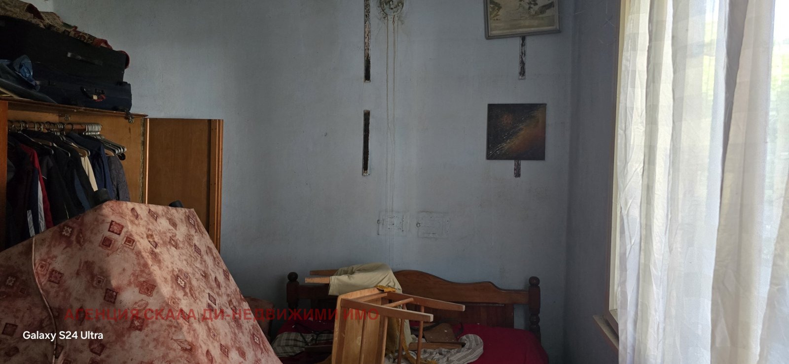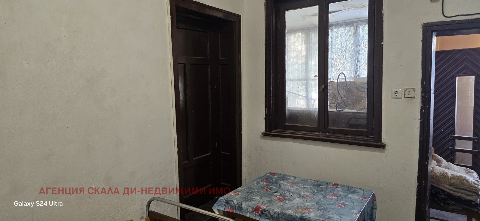 Къща в близост до центъра на гр.Годеч, на асфалтова улица с 1/2 ид.част от двор с обща площ от 658 кв.м. Двора е равен и е разделен за да се ползват самостоятелно 329 кв.м., оградени с телена ограда. Къщата е гредоред, със застроена площ по нот.акт от 50 кв.м.(реално е по голяма) и се състои от простоно входно антре, три стаи, малка кухня, мокро помещение, баня с тоалетна. Външна изолация, ток, вода от водопровод с централна канализация. Общото състояние на имота е за ремонт. Стопански постройки в двора.