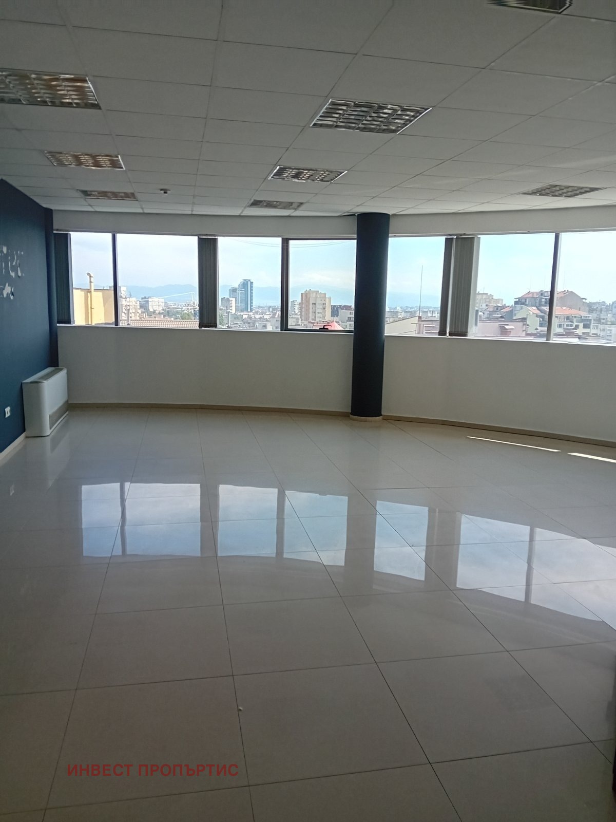 Инвест Пропъртис отдава офис в представителна бизнес сграда от 2008 г., висок клас ново строителство, на емблематична, ключова локация-кръстовището на бул.България и бул.Гоце Делчев. Сред много офис сгради, банки, търговски центрове, спирки на градски транспорт и метростанция. Сградата е клас В +, с денонощна охрана и видеонаблюдение, контрол на достъпа, централна климатизация, окабеляване, окачени тавани, BMS-система и др. Височина- 2,80 м.