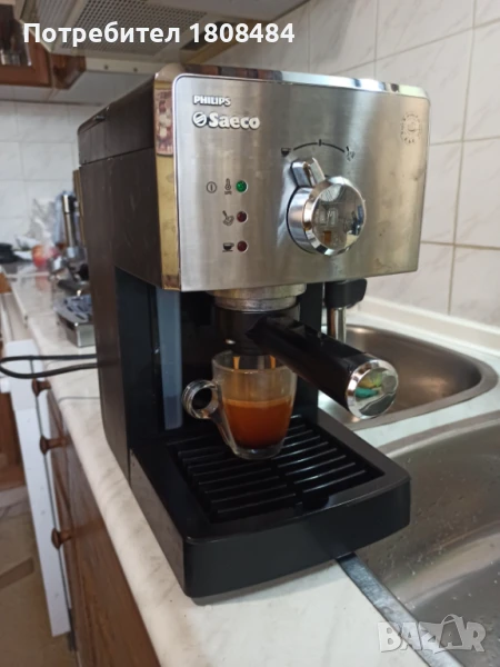 Кафе машина Саеко Поемия с ръкохватка крема диск, работи перфектно и прави супер кафе с каймак.