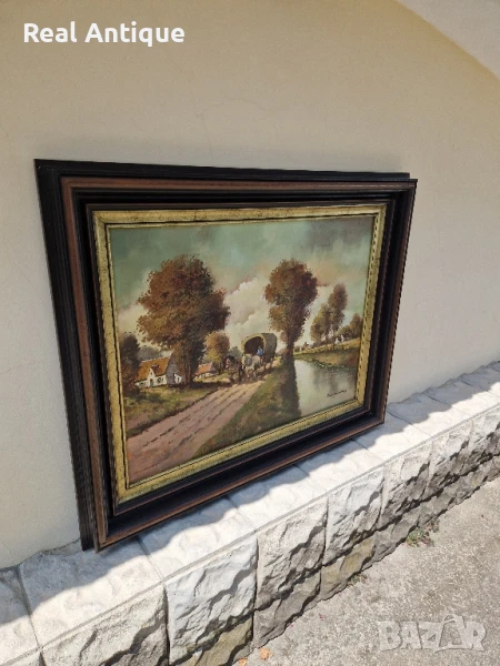 Продавам страхотна голяма антикварна майсторска авторска картина масло върху платно в много добро състояние с чудесна дървена рамка. Размери 105 см на 85 см. Прекрасно допълнение към интериора на Вашия дом офис вила ресторант хотел. Подходяща и за подарък. Работя с всички куриери. Отговарям бързо.