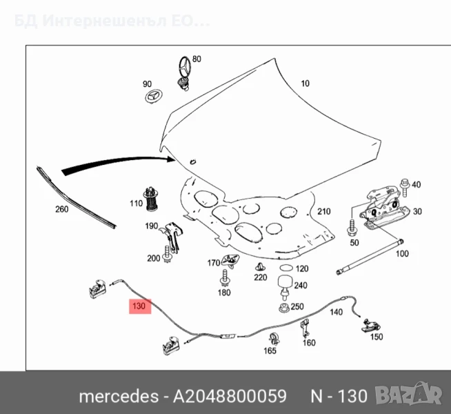 Жило за отваряне на преден капак Mercedes, C-Class W204,