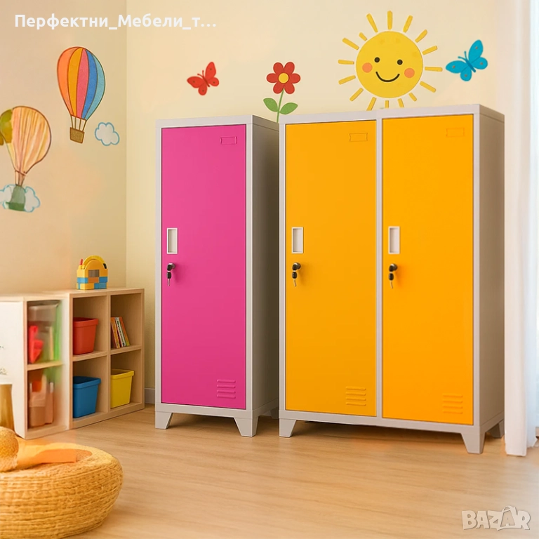 Различни цветове метални гардеробчета за училища,детски занимални и градини,детска ясла и клубове.