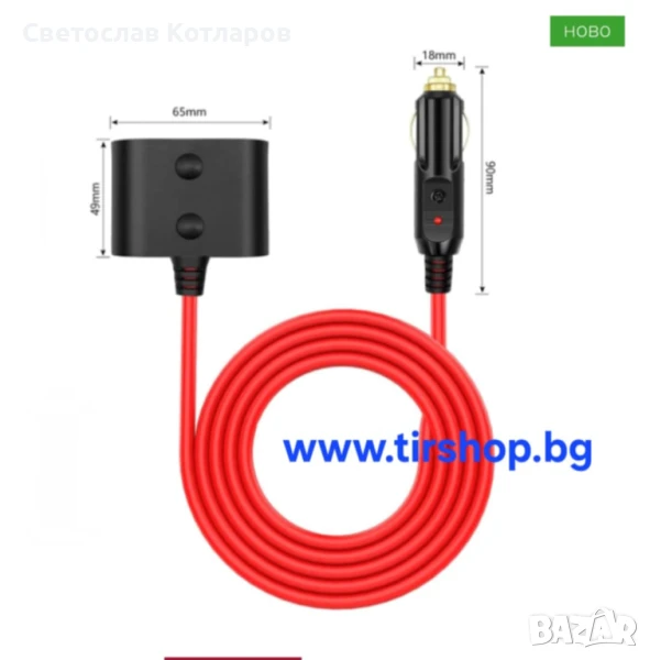 Разклонител за запалка с 2 гнезда - дебел 1.5м кабел