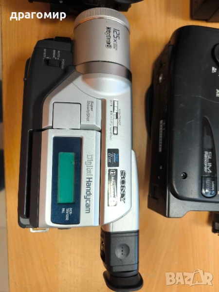 продавам три видеокамери без батерии и зарядни, сонито е продадена,общо за 45 лв,по отделно 25 лв броя, имам още много други фотоапарати, камери, обективи, чанти, светкавици, батерии, зарядни устройства, касети, филтри, ремъци, ленти, при закупуване на повече неща отстъпка