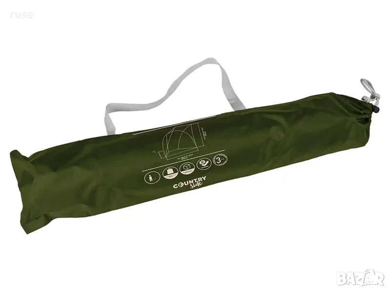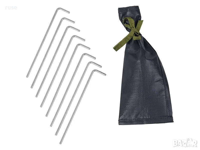 Състав: покрив на палатката от 100% полиестер, основа от 100% полиетилен, пръти от фибростъкло, стоманени колчета