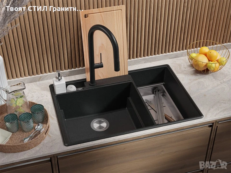 Черна кухненска мивка Париж 80 Work&Store от гранит – две функции, едно иновативно пространство