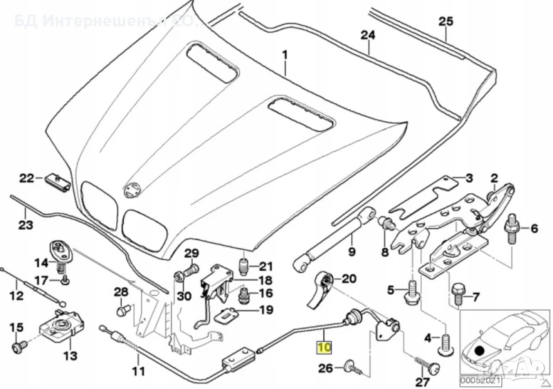 51238402615 Жило за отваряне на преден капак BMW, X5 E53