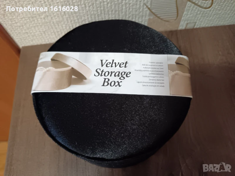 Кръгла кадифена кутия за съхранение на бижута. → Обява 51287591