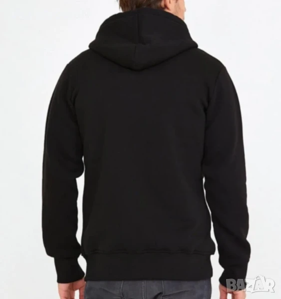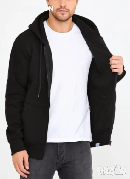 Нов мъжки суичър в черен цвят с цип, качулка и джоб отпред тип