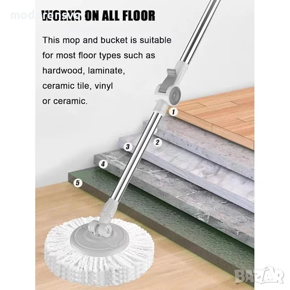 ✔ Ефективна система за изстискване – премахва излишната вода, без да се налага да си цапате ръцете