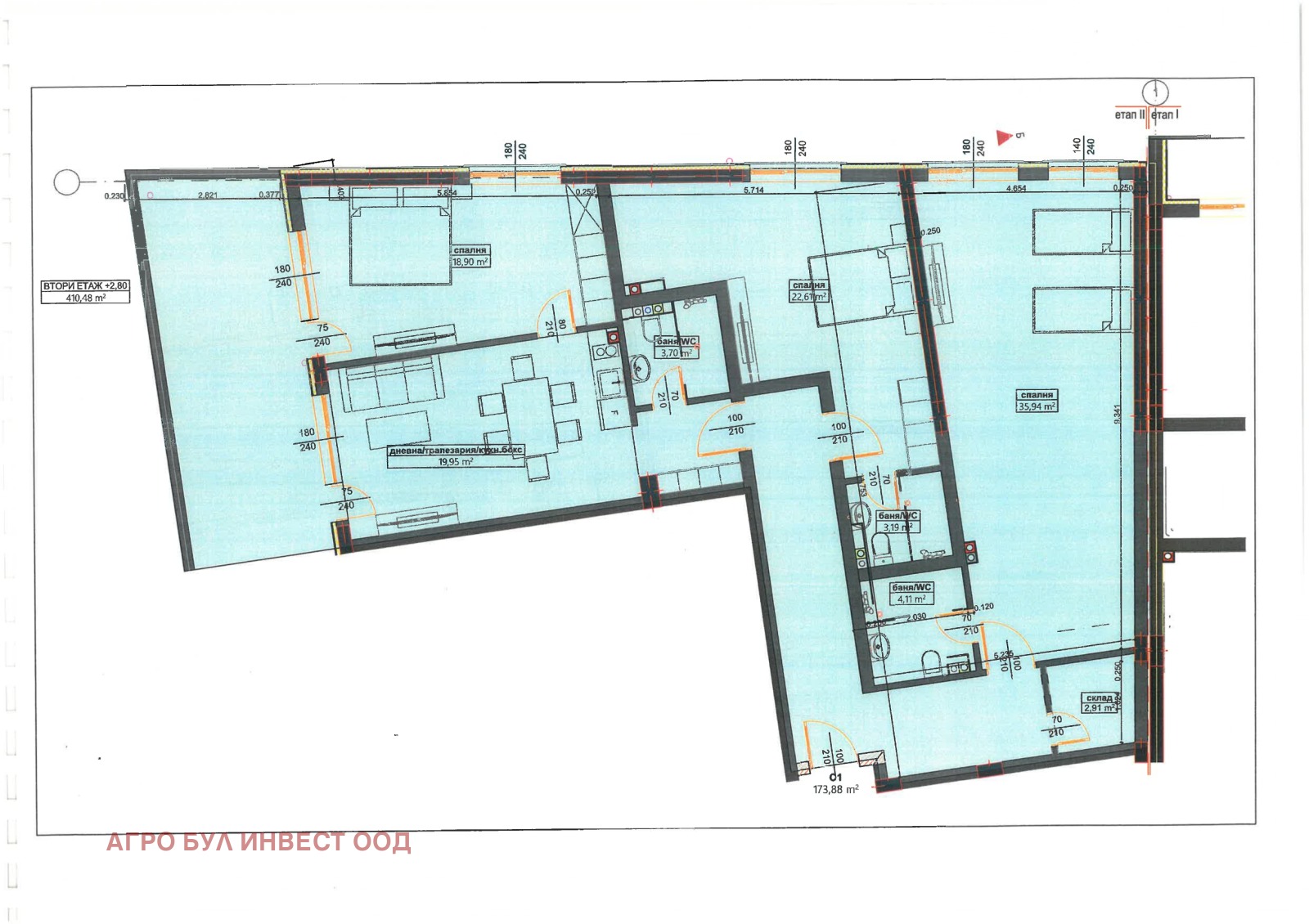 Чиста жилищна площ 173.88 кв.м