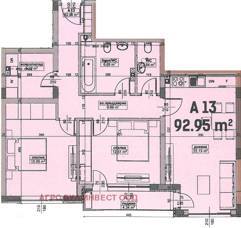 Чиста жилищна площ 92.95 кв.м
