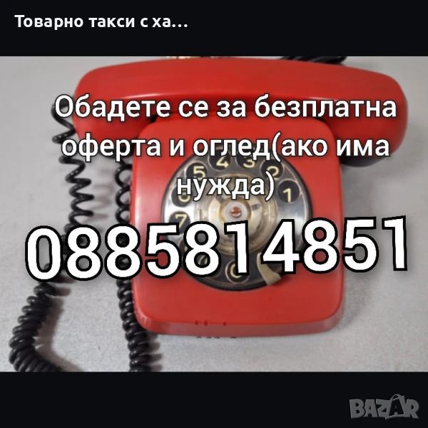 Предлагаме: 🔹 Транспорт с товарен бус – мебели, багаж, техника, строителни материали и др. 🔹 Хамалски услуги – пренасяне на тежки и обемни товари от/до адрес. 🔹 Извозване на стари мебели, електроуреди, отпадъци – до лицензирани сметища. 🔹 Почистване на мазета, тавани, апартаменти – с изнасяне и транспорт. 🕒 Работим всеки ден, включително събота и неделя 📍 гр. Варна 💰 Ниски цени – по договаряне, в зависимост от обема и разстоянието ✅ Коректно отношение и бързо изпълнение 📞 : 0885814851 (Viber / WhatsApp – налични)
