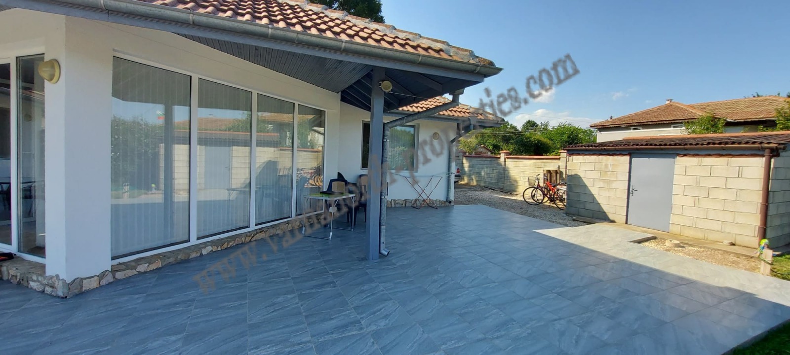 Имотът се намира в тихо и желано крайбрежно село с редица различни плажове в близост. Това е желано село близо до Балчик по отношение на удобствата: ресторант с бар, B&B, поща, училище, детска градина, църква, няколко магазина, лекар и редовни автобусни връзки до Балчик и Добрич. Селото е в непосредствена близост до Балчик. Къщата е с жилищна площ от 152 квм. и е построена на парцел от 1285 кв. м. Къщата се състои от просторен хол с камина, напълно оборудвана кухня, три просторни спални, две бани, още една тоалетна и мокро помещение. Климатици във всички стаи! Всекидневната дава достъп до басейна и покрита веранда. Имотът би бил фантастичен дом на брега на морето или атрактивен имот за инвестиция и отдаване под наем. При поискване е на разположение видео на имота.