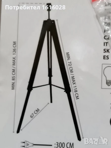 Телескопична подова лампа.Тринога основа - разтегателна. → Обява 51288845