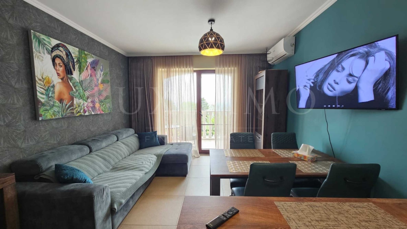 Жилището е напълно обзаведено с дизайнерски мебели и висококачествени електроуреди и е готово за нанасяне. Подходящо е както за лично, целогодишно ползване, така и за инвестиция.