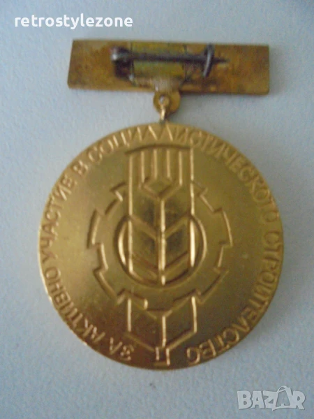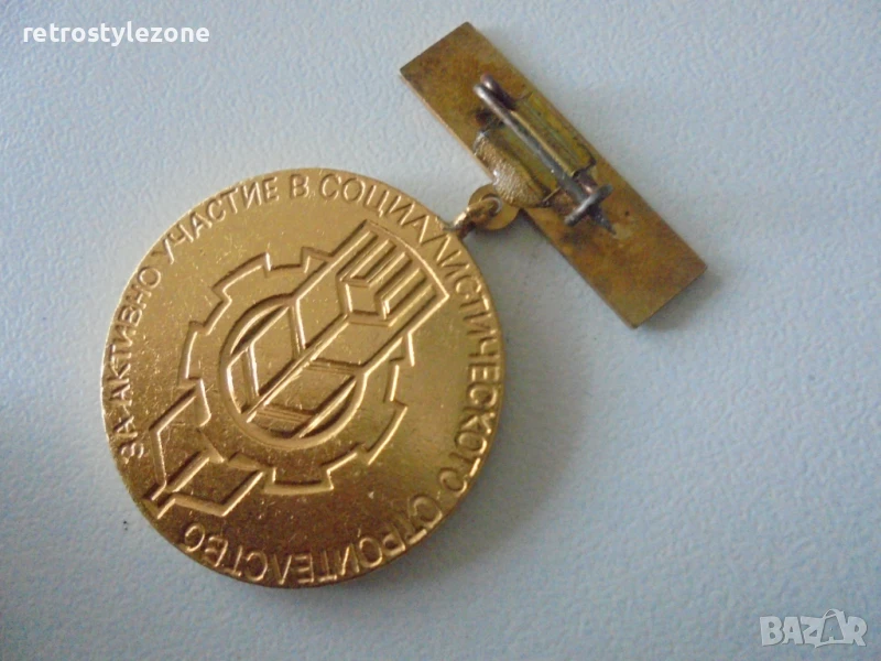 „За активно участие в социалистическото строителство“ - 25 г. Медалът е изработен от метал с златисто покритие, със символи на труда и индустрията (зъбно колело и житен клас).