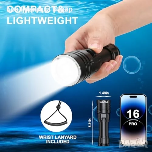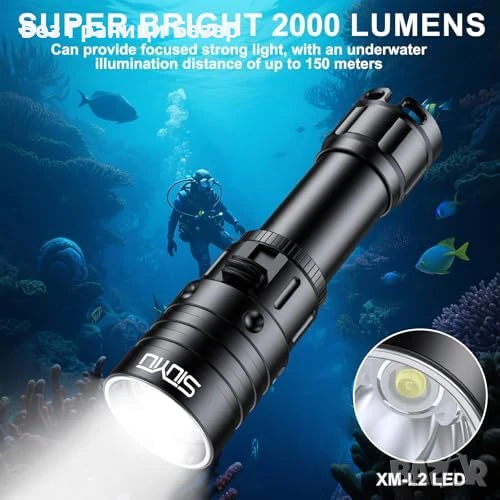 Нов подводен Фенер за гмуркане 2000LM, дълбочина 150м, дълъг живот
