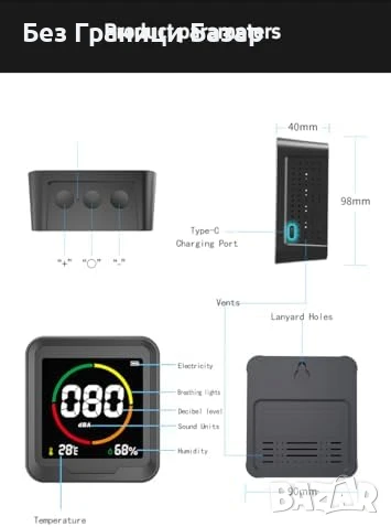 Нов Шумомер 3 в 1: Децибели, Температура, Влажност – LCD Дисплей