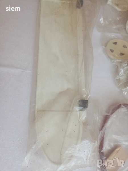 Българско производство от соц-а. Материал- пластмаса. Всичко е чисто ново. На някои липсват найлоновите опаловки.
