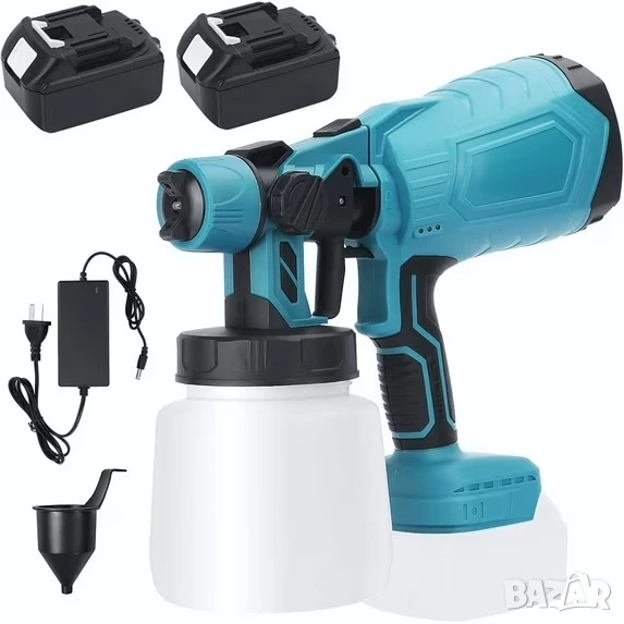 Безжичен пистолет за боядисване Електрическа бояджийска пушка 800ML с 2 бр. батерии.