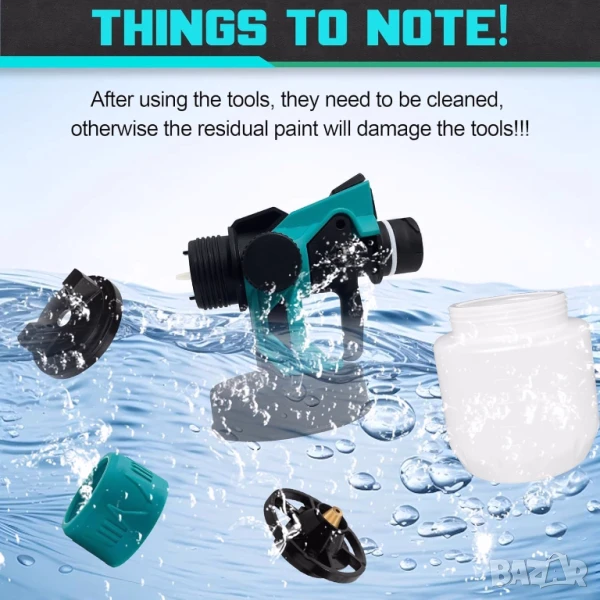 【Лесен за употреба и почистване】Независимо дали сте начинаещ или професионалист, можете да разглобите и почистите този безжичен пистолет за боядисване за няколко минути. Той е идеален за различни приложения за боядисване, включително вътрешни и външни стени, тавани, мебели за бои на маслена основа, като е добър помощник по време на работа.