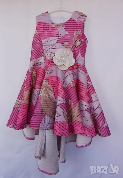 Красива цветна детска рокличка. Подходяща за официални случаи и за ежедневно носене, размер 110 см. Точни мерки: обиколка на гърдите 68 см, в предната част е дълга 62 см, а в задна гръбна част е дълга 81 см. Цена 30 лв.