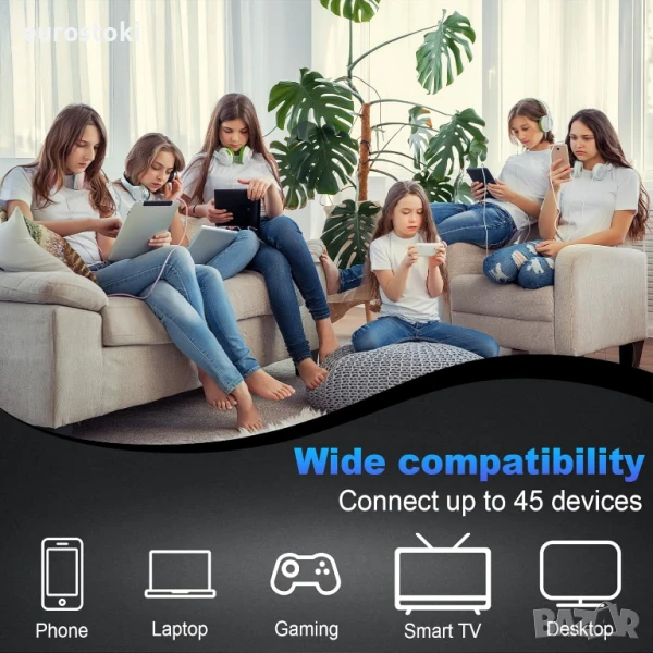 Съвместим с всички 802:11N/B/G съвместими безжични мрежови устройства, рутери, модеми и Wi-5 устройства, като смартфони, таблети, лаптопи, смарт телевизори и други!