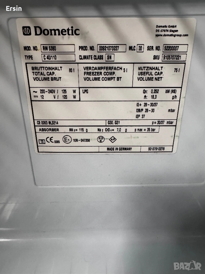 Хладилник Dometic RM5380 (Свален от чисто нов Кемпер) → Обява 51291725