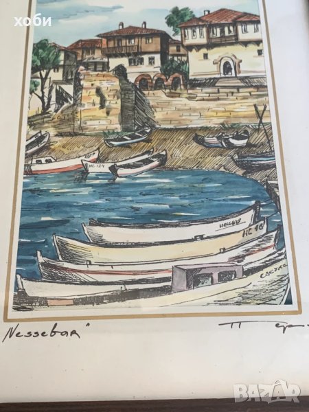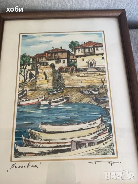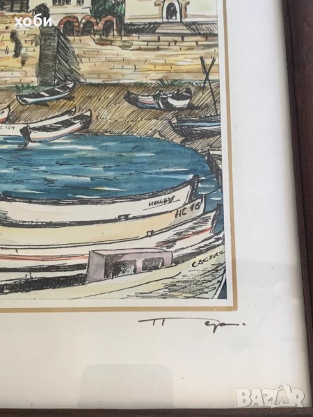 С рамка и стъкло именувана и подписана от художника неразчетен подпис