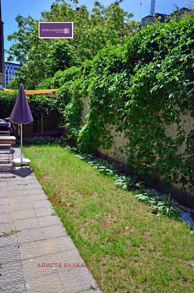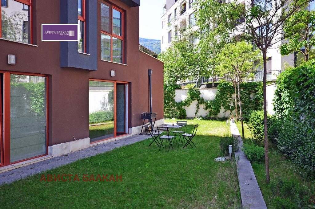Луксозен тристаен апартамент в нова кооперация с подземно паркомясто, склад и собствен облагороден двор/160кв.м./ с достъп от всички помещения. Имотът предлага елегантен и модерен интериор с висок клас материали, електроуреди и дизайнерско обзавеждане. Разпределението е следното: