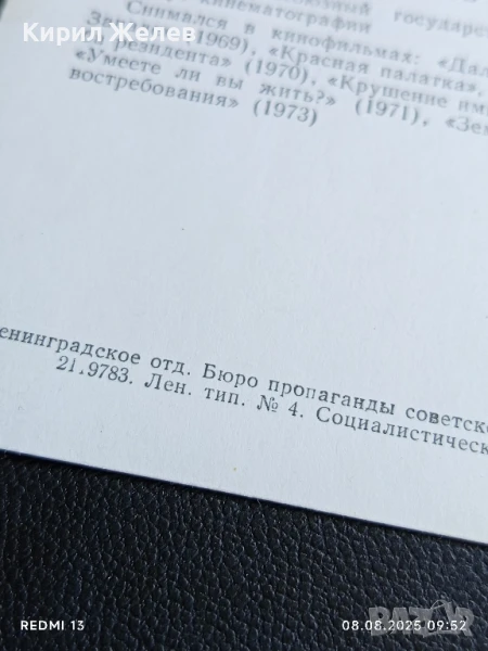 Стара картичка 73г. СССР АНДРЕЙ ВЕРТОГРАДОВ АРТИСТ за КОЛЕКЦИОНЕРИ 50683 → Обява 51294140