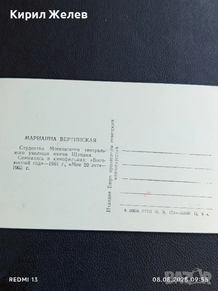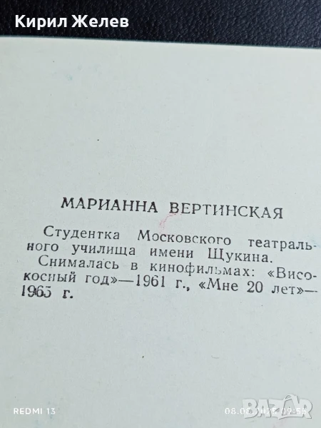 Стара картичка СССР МАРИАННА ВЕРТИНСКАЯ АРТИСТ за КОЛЕКЦИЯ ДЕКОРАЦИЯ 50701