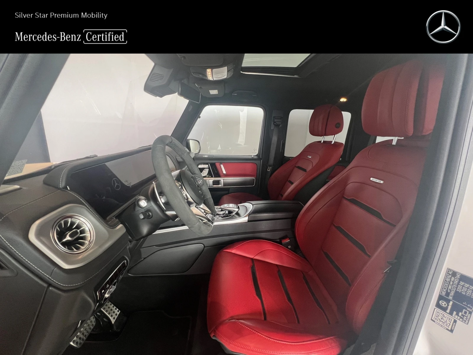 Цвят: 885 G manufaktur bright, опалит бял Тапицерия: 537 ест. кожа напа, класическо червена / черна K81 Резервоар с увеличен обем (100 л) E15 AMG лайсни на праговете от благородна стомана JA6 Активен спирачен асистент V36 G manufaktur дръжки в кожа EK0 Mercedes-Benz система за аварийни повиквания EV1 Пакет " Смартфон интеграция" PT1 Пакет " Техника" HA1 Йонизация на въздуха в купето H12 Стационарно отопление FZ8 Пакет " Защита от кражба" EU4 COMAND Online EV3 Смартфон интеграция, Carplay EX6 Безплатна картова актуализация за период от 6 години от дата на първа регистрация PEO AMG Edition 55 EM3 Подготовка за мултимедийна система за задните места B24 Дистанционно управление за независимото отопление 287 EASY-PACK сгъваеми облегалки на задните седалки C52 AMG покривало за предпазване от прах или надраскване Y75 Специален лак F49 Ел. отопляемо челно стъкло 581 Автоматична климатична инсталация THERMOTRONIC 500A ест. кожа Exclusive RB5 G manufaktur пръстен на резервното колело, лакиран в цвета на купето JC0 Горна част на таблото в кожа 01U Подготовка за Навигационни услуги U78 AMG Performance ауспухова система, управляема CK4 Брони и уширения на калниците в черно Q55 Теглич с ESP® стабилизация на ремарке RY6 Система за следене налягането в гумите 8B8 Ограничаване на Активния асистент при паркиране (UN R79) PAZ Пакет " AMG нощ II" 281 AMG DYNAMIC SELECT FR2 Амбиентно интериорно осветление FO1 AMG Edition 55 фолиране 071 AMG инструментално табло W11 DM2. 0 интериор F463 Моделна серия 463 007 Ел. регулируема кормилна колона 292 Странични въздушни възглавници за предните места JP0 PRE-SAFE® система K14 Сервизен интервал 20. 000 км GA Автоматична трансмисия C92 Външна декоративна предпазна лайсна с вложка в черно 169 Пакет " Интериорно осветление" 587 Амбиентно осветление с проектиране логото на марката SH1 Странични въздушни възглавници за задните места EA2 Асистент за мъртвия ъгъл 601 Тъчпад с контролер 602 Пакет " Отделения за вещи" F11 Дръжка на таблото за пътника до водача 889 KEYLESS-GO Start/Stop U01 Индикация за статуса на коланите за задните места MJ7 ECO Start-Stop EM8 TV-тунер K36 Повишена вместимост на резервоара 01U Външен цвят металик L6G AMG Performance волан в микрофазер DINAMICA P76 Линия EXCLUSIVE, интериор 08U Подготовка за Vehicle Setup VA7 Декоративни елементи AMG Carbon, мат D09 Extended warranty (2+2 years / 200 000 km) BB3 ESP® JW8 ATTENTION ASSIST C85 Екстериорни елементи и радиаторна решетка в цвета на купето C62 Техническа защита в графит черно, прахово боядисана JS1 360° камера 09U Подготовка за Vehicle Monitoring EZ9 Активен асистент за дистанция DISTRONIC C59 Лайсни на праговете на предните врати от благородна стомана F85 Таван в обсидиан черно 075 AMG аналогов часовник с IWC-дизайн 042 AMG високоефективна спирачна система PA8 Пакет " Паркиране" с камера 360° PK2 Пакет " Активни мултиконтурни седалки Plus" 989 Идентификационен номер под челното стъкло P82 GUARD 360° Plus защита на автомобила A20 AMG RIDE CONTROL окачване FH5 Таван в микрофазер DINAMICA, черен EZ8 PARKTRONIC асистент при паркиране 069 Ел. регулируеми ел. отопляеми външни огледала CK6 AMG специфична радиаторна решетка в тъмен хром 345 Чистачки със сензор за дъжд A73 100% блокировки на диференциалите BS2 AMG спирачни апарати, лакирани в червено (предни и задни) P72 ENERGIZING управление на комфорта 603 Offroad-екран JA9 Асистент за пътните знаци T84 Странични степенки EM4 Пакет „ Асистиращи системи“ F75 Oгледало за обратно виждане без рамка EK1 Комуникационен модул за услугите Mercedes me connect (LTE вариант) S82 Плисиран дизайн P40 Уширени арки на калниците C55 Декоративна защита под купето в обсидиан черно W72 Подсилено затъмнени тонира