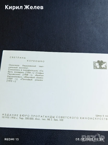 Стара картичка 70г. СССР СВЕТЛАНА КОРКОШКО АРТИСТ за КОЛЕКЦИОНЕРИ 50713 → Обява 51294221