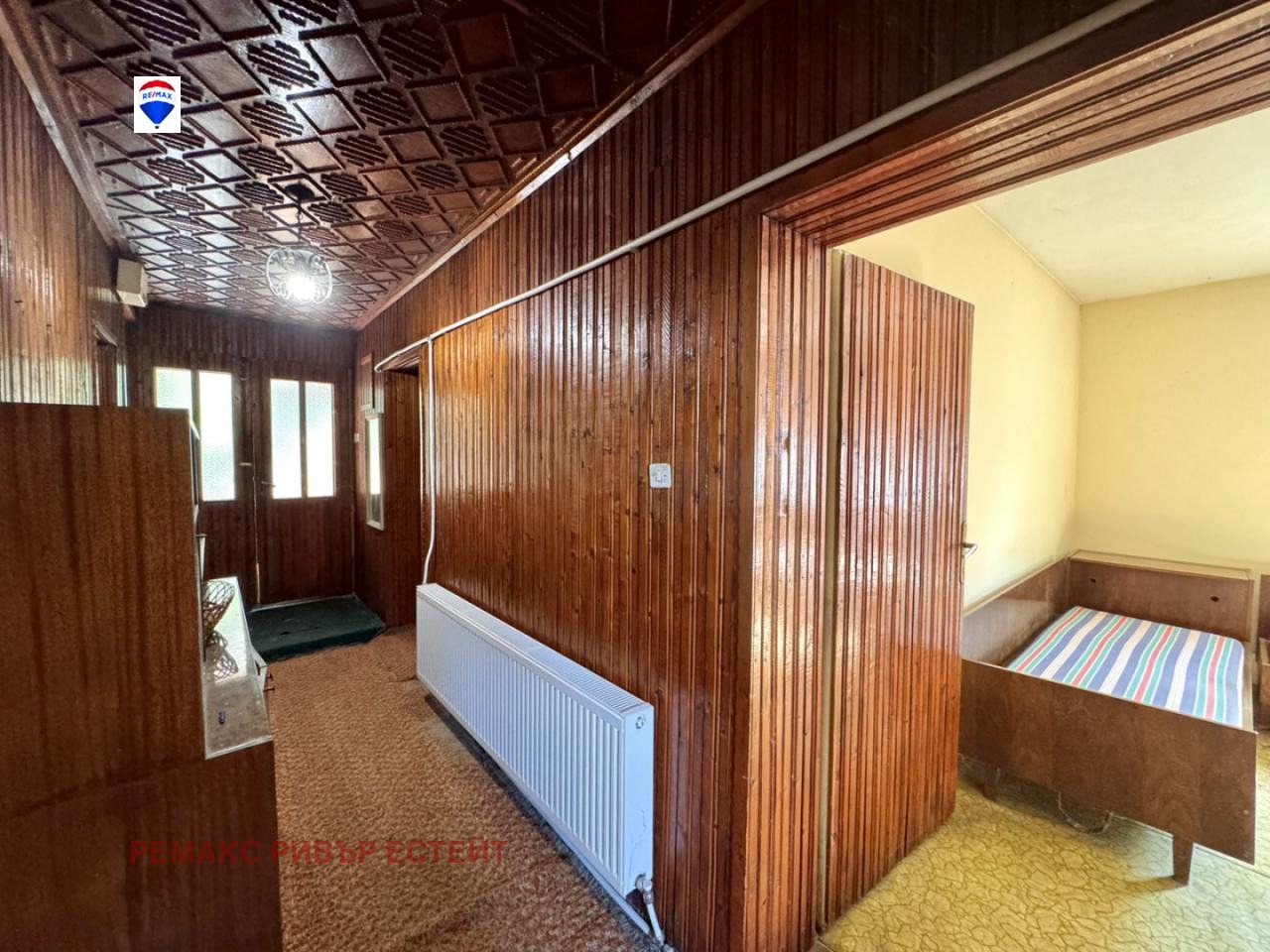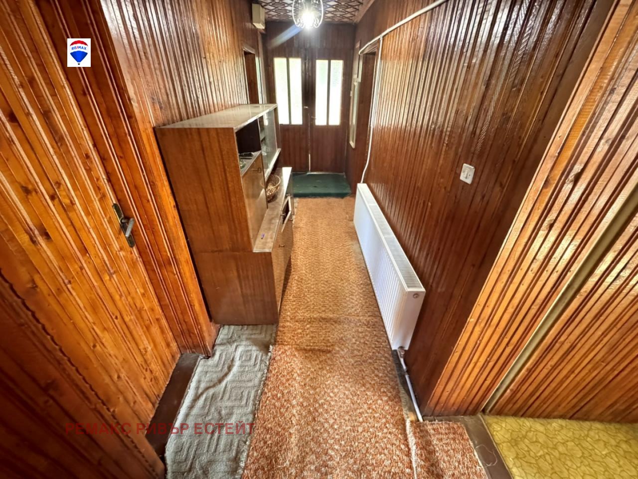 - Дълъг коридор с дървена ламперия;