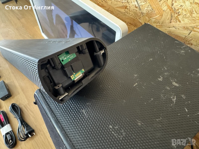 Телевизора има две наранявания по екрана повърхностни , саундбара също е с повърхностни наранявания , на снимките може да се видят и самите тях