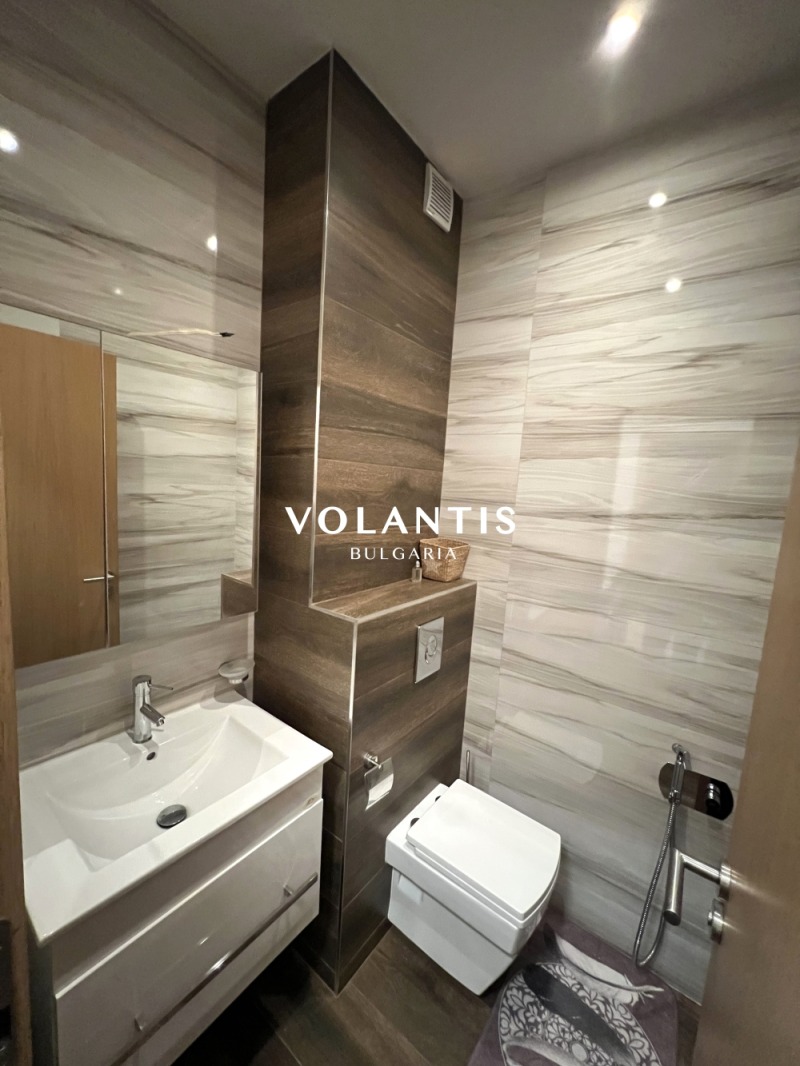 Едната спалня, разполага с просторна гардеробна и лична баня и тераса. Цялостната идея е постигане на максимална функционалност и уединение, което е осъществено с висококачественото изпълнение на интериора. Вградени електроуреди от висок клас, изключително удобна мека мебел и алуминиева дограма с френски прозорци ще гарантират Вашия комфорт. Апартаментът е изключително топъл и светъл, което облекчава месечните разходи. Отоплението се извършва посредством ТЕЦ и климатик.