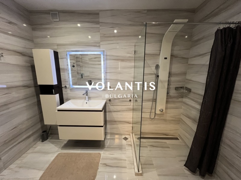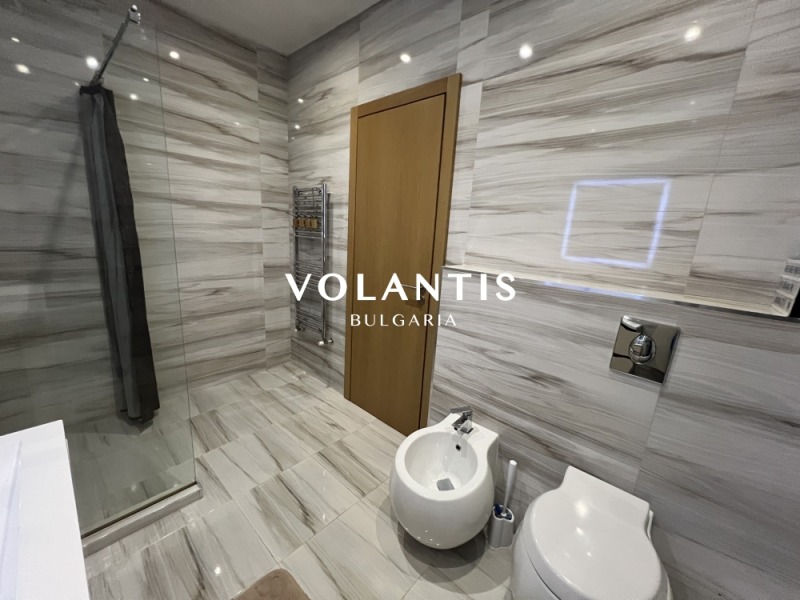 Едната спалня, разполага с просторна гардеробна и лична баня и тераса. Цялостната идея е постигане на максимална функционалност и уединение, което е осъществено с висококачественото изпълнение на интериора. Вградени електроуреди от висок клас, изключително удобна мека мебел и алуминиева дограма с френски прозорци ще гарантират Вашия комфорт. Апартаментът е изключително топъл и светъл, което облекчава месечните разходи. Отоплението се извършва посредством ТЕЦ и климатик.
