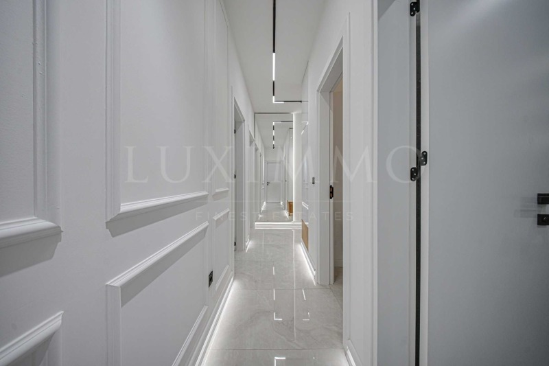 Апартаментът от 110,81 кв.м е разположен на 2-ри етаж, с гледка към вътрешен двор. Имотът е светъл, предлага модерна визия и интериор с изчистени линии. Големите прозорци допринасят за изобилие на простор и светлина, а качествените материали и изисканите мебели допринасят за уют и елегантност. Отоплението е подово чрез газово котле, като допълнително са инсталирани климатици за комфорт през летните месеци.